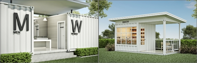 ホテル、キャンプ場、グランピングなどの宿泊施設や、様々な店舗や屋台などテナントとしてはもちろん、移動や設営も柔軟に対応できるので、移動販売やイベント会場のブースとしてもご活用いただけます。また、最近はクリニックの離れとしてなども需要が高まってきています。そのほか、仮設トイレ、露天風呂の脱衣場、コインランドリー施設、カラオケボックスなど可能性は無限大です。